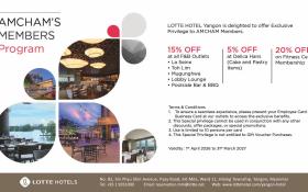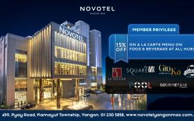 As a valued AMCHAM member, we are delighted to offer you an exclusive 15% discount on the à la carte menu for food and beverages across some of the finest dining and leisure venues at Novotel Yangon Max.
