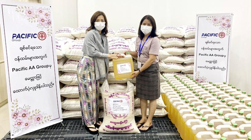 Pacific AA Group's subsidized 10% to 3% of each employee's salary based on salary range as living allowance and 51 kg bag of rice & 5 viss of Peanut Oil to each employee as an employee's welfare which is 166 million kyats worth in total