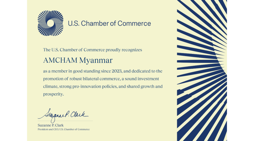 The American Chamber of Commerce in Myanmar is honored to receive accreditation from the U.S. Chamber of Commerce as of August 31, 2023.