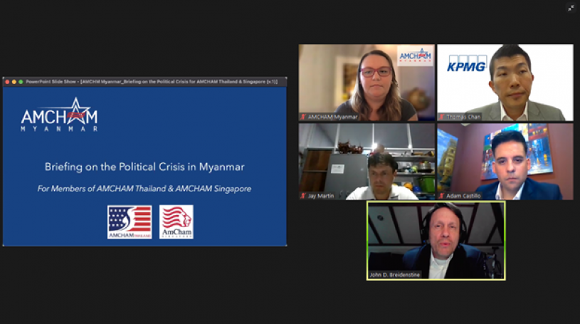 On May 18, AMCHAM Myanmar hosted a special panel presentation designed for our colleagues at AMCHAM Thailand and AMCHAM Singapore to hear from business leaders on the ground about the political crisis and its impact on business operations. This discussion covered the U.S. government response to the coup, security and operational concerns, and the evolving landscape of the new sanctions regimes from the U.S., UK, and EU.