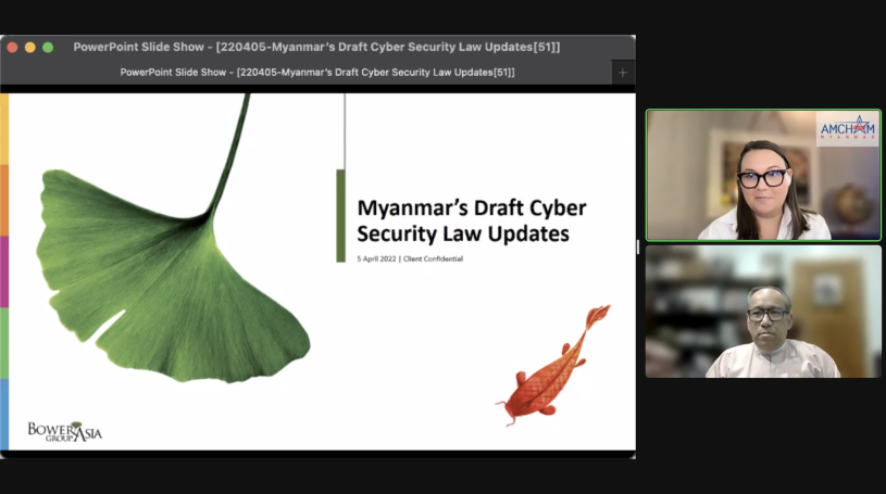 On April 5, AMCHAM Myanmar hosted a special session on Myanmar’s draft Cybersecurity law, highlighting what the key provisions listed in the draft. We are thankful towards our guest, Dr. Zaw Oo, the incoming managing director of BowerGroupAsia for providing an extensive briefing and taking questions from the participants.
