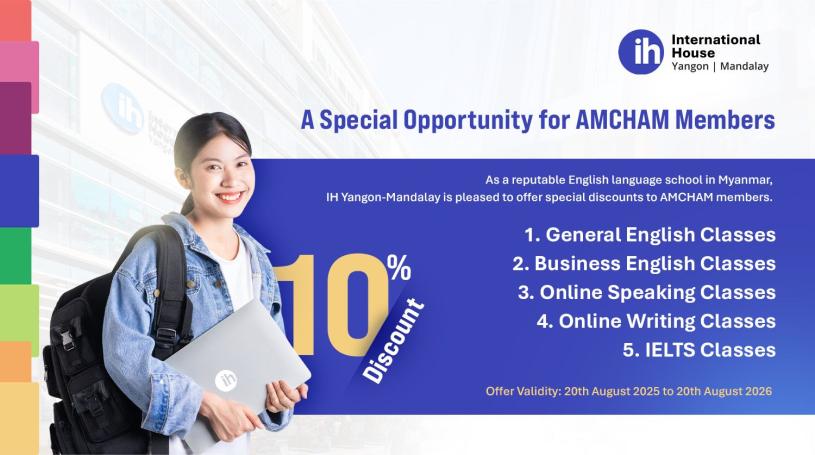 International House Yangon-Mandalay is pleased to offer special benefits for members of the AMCHAM.