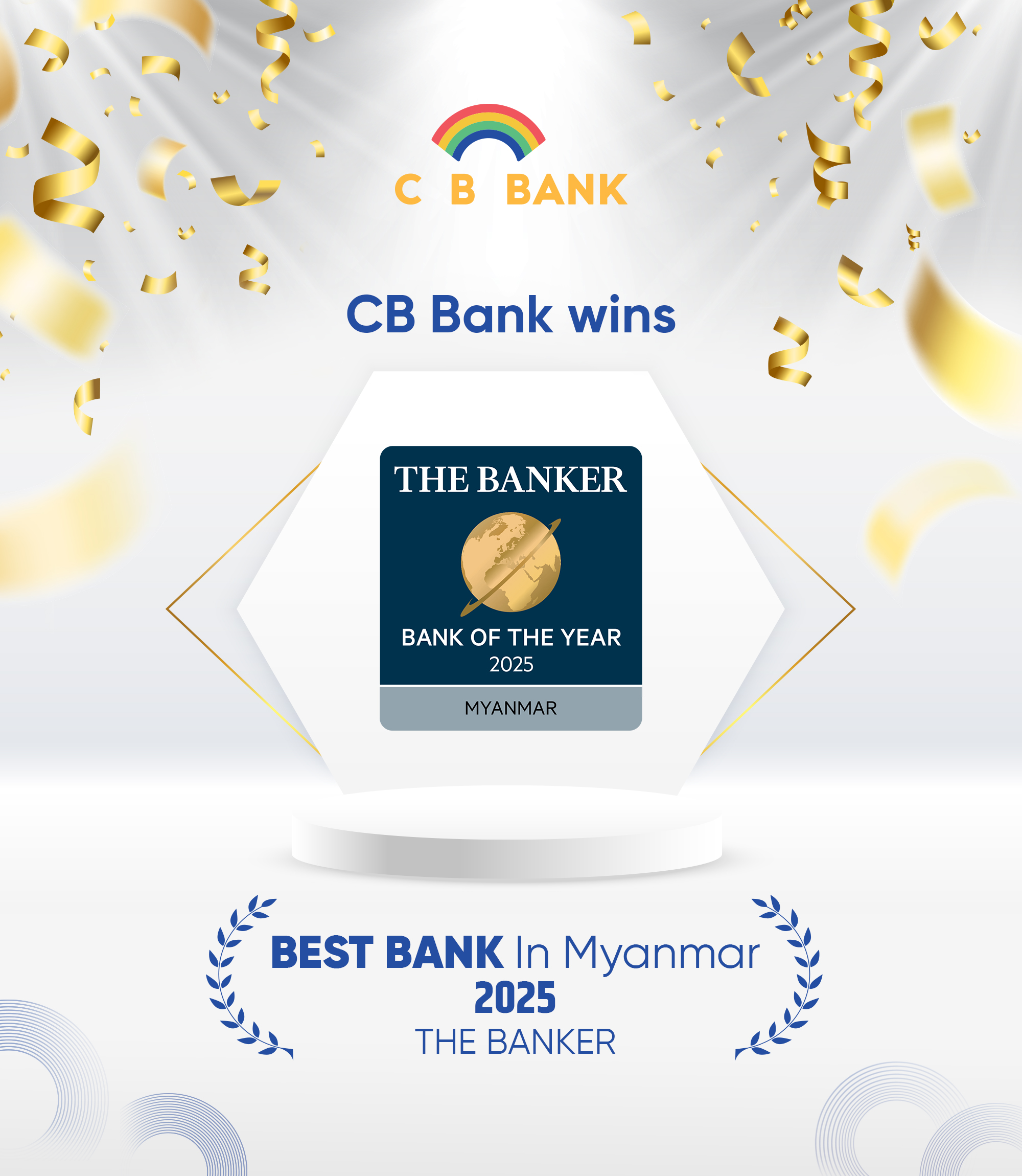 CB Bank is honored to be named βBest Bank in Myanmar 2025β, by The Banker, a prestigious recognition that reflects our strong financial performance, customer-centric approach, and continuous commitment to excellence across the banking sector.