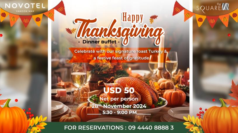 We look forward to celebrating Thanksgiving with you at Novotel Yangon Max and sharing in the joy of togetherness!