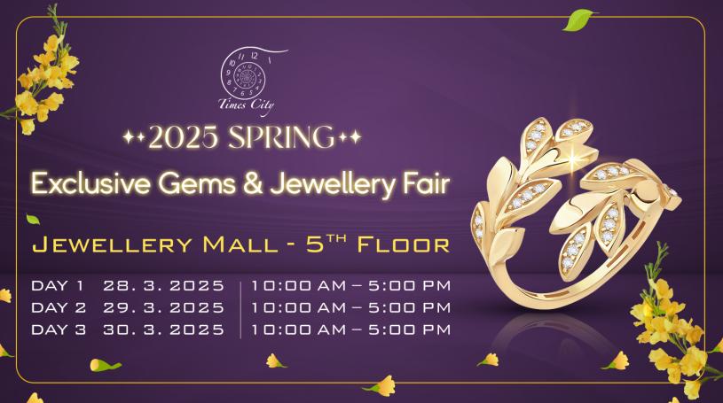 We are thrilled to invite you to the 2025 Spring Exclusive Gems and Jewellery Fair, taking place from March 28 to 30, 2025, at 5th Floor of Times City Complex, from 10:00 AM to 5:00 PM each day. This premier event will feature over 70 reputable jewel shops, offering their finest collections and exclusive discounts for purchases made during the fair.