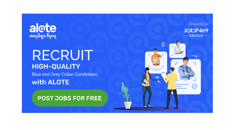 Alote™ (Alote.com.mm) is the first and leading dedicated digital recruitment platform for all your operational, non-office roles such as security personnel, drivers, warehouse and logistics staff, machine operators, construction workers and technicians of all kinds, F&B, retail workers or admin clerks. Get connected with thousands of qualified job seekers in industries such as manufacturing, construction, logistics, hospitality, F&B, retail and more.