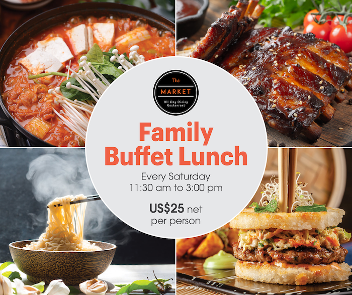 We are happy to announce that starting form 2 October 2021, The Market restaurant will be reopen for Family buffet lunch on every Saturday, 11:30 am to 3:00pm.