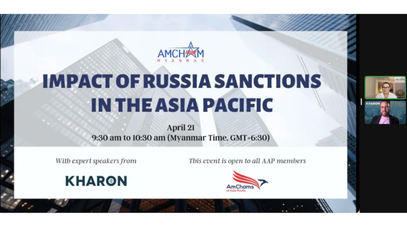 On April 21, AMCHAM Myanmar hosted a webinar presentation on the impacts of Russia sanctions in the Asia Pacific region. We are thankful to our expert speaker Josh Shrager, Vice President of Kharon for sharing his insights on sanctions and engaging in an interactive live Q+A session with the participants. We are also thankful to the AAP members in the region for joining our event. It was a pleasure to host our members and colleagues in AMCHAM Myanmar and from throughout the region at this event.
