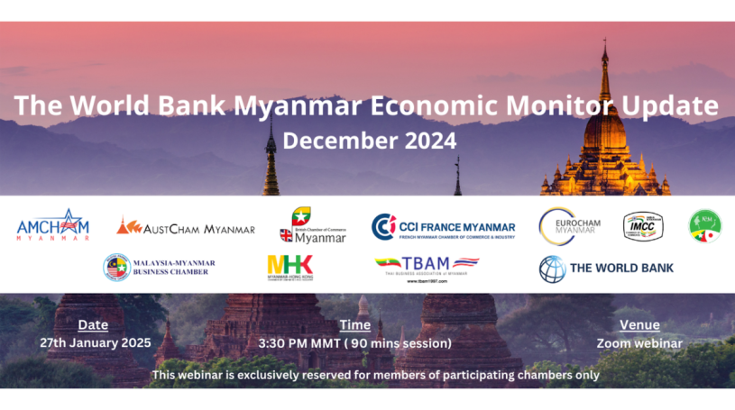 On January 27, AMCHAM Myanmar, together with other 10 foreign chambers of commerce in Myanmar, hosted the bi-annual briefing on the World Bank’s Myanmar Economic Monitor. As always, thank you to our expert speakers from the World Bank Team: