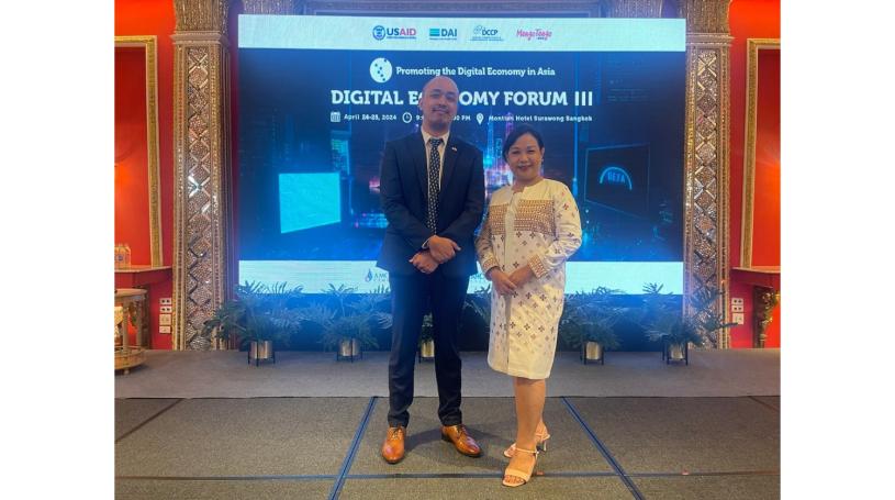 On April 24-25, two AMCHAM Myanmar representatives: AMCHAM Myanmar Executive Director, Danny Kyaw and Chief Corporate Affairs Officer at Digital Money Myanmar Ltd., Khine Wai Thwe joined the Digital Economy Forum III in Bangkok, a part of the program supported by USAID and implemented by DAI and MangoTango Asia. During the engaging two-day forum, AMCHAM Myanmar gained insights and knowledge on different approaches to digital trade, ecommerce, connectivity and cybersecurity policy, with a strong focus on the ASEAN Digital Economy Framework Agreement (DEFA).